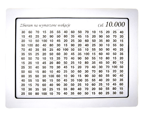 Zbieranie pieniędzy nigdy nie było tak proste i motywujące! Wystarczy wybrać kwotę, zakreślić, odłożyć – i zbliżać się do wymarzonego celu.